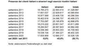 “In termini di teste si tratta, in un anno normale, di circa la metà delle presenze turistiche. Ma – continua la Federazione degli albergatori – in termini di spesa, chi attraversa il confine italiano generalmente spende di più rispetto a un nostro connazionale. Ci considereremo fortunati se a settembre riusciremo ad eguagliare il risultato dell’anno scorso: 8 milioni di turisti tra italiani e stranieri. Se pensiamo che la stessa cifra a settembre 2019 (anno record da un punto di vista turistico) è stata raggiunta solo dagli stranieri, ci rendiamo conto di quanto sia grave la situazione”.