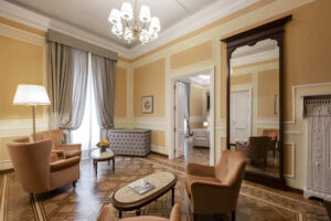 Le Suite si caratterizzano per gli arredi di gran classe, tra cui preziosi mobili d’epoca, e per le ampie metrature. La maestosa nuova Suite Presidenziale La Superba, ampia ben 170 metri quadri, è il fiore all’occhiello della struttura, con due camere, un salotto e due bagni, entrambi completi di spa di ultima generazione.
