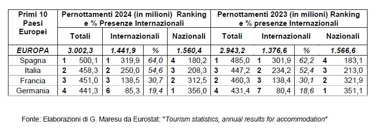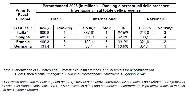 “Turismo, l’Italia supera la Francia nel 2024 grazie ai turisti stranieri”: Con questo titolo “Il Sole 24ore” del 7 marzo scorso annunciava in un articolo una “non notizia”, in quanto il sorpasso dell’italia sulla Francia per quanto riguarda il movimento turistico internazionale si era verificato già da diversi anni. Basta leggere correttamente i trend delle statistiche sulle presenze e non sugli arrivi alle frontiere
