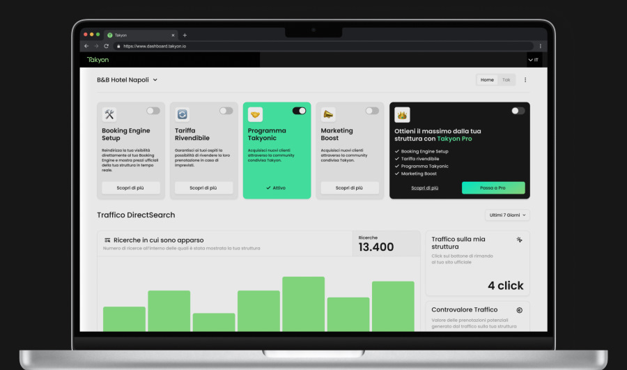 Takyon cambia il paradigma perché va a colmare il divario tecnologico del canale diretto rispetto alle OTA, offrendo servizi aggiuntivi come la prenotazione rivendibile. Di fatto, quindi Takyon coniuga nella propria offerta sia l’intermediazione digitale supportando gli albergatori per massimizzare la propria visibilità online, sia la disintermediazione commerciale, poichè la prenotazione passa unicamente dai siti ufficiale delle strutture. Non si tratta solo di una vetrina di ricerca per hotel, ma di un vero e proprio ecosistema digitale che connette direttamente viaggiatori e strutture ricettive.
